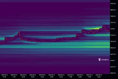 Ночью BTC преодолел $74k, в моменте доходил до $76k, и заодно ликвидировал шорты почти на $190 млн. Но теперь картина уже не такая комфортная для опоздавших быков. Судя по картам ликвидаций, следующая