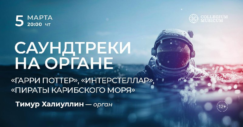 📍Афиша концертов Collegium Musicum на ближайшую неделю! 5 марта / четверг, 20:00 Саундтреки на органе: «Гарри Поттер», «Интерстеллар», «Пираты Карибского моря» 8 марта / воскресенье, 16:00 Вивальди