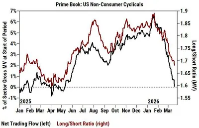 👨💼 Goldman Sachs: Хедж-фонды уже девятую неделю подряд чисто продают нециклические потребительские сектора, точнее циклические вне потребителя, включая энергетику, материалы, промышленность, финан