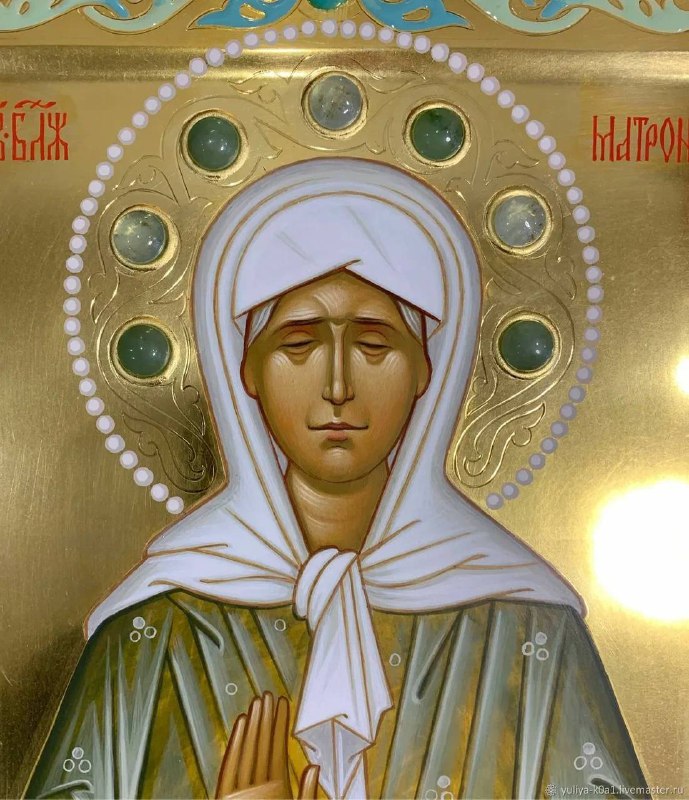 О, блаже́нная ма́ти Матро́но, душе́ю на Небеси́ пред Престо́лом Бо́жиим предстоя́щи, те́лом же на земли́ почива́ющи и да́нною ти свы́ше благода́тию разли́чная чудеса́ источа́ющи, при́зри ны́не ми́лост