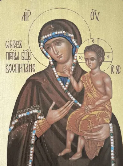 О, Пресвята́я Влады́чице Де́во Богоро́дице, премилосе́рдная Ма́ти всех челове́к, спаси́ и сохрани́ под кро́вом Твои́м чад на́ших [имена], и всех отроко́в, отрокови́ц, младе́нцев и во утробех матернех