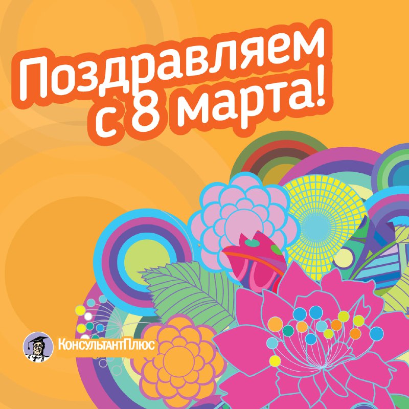 Поздравляем с 8 Марта! 🌷 С праздником весны! Желаем радости, улыбок и солнечного настроения каждый день! Ваш КонсультантПлюс