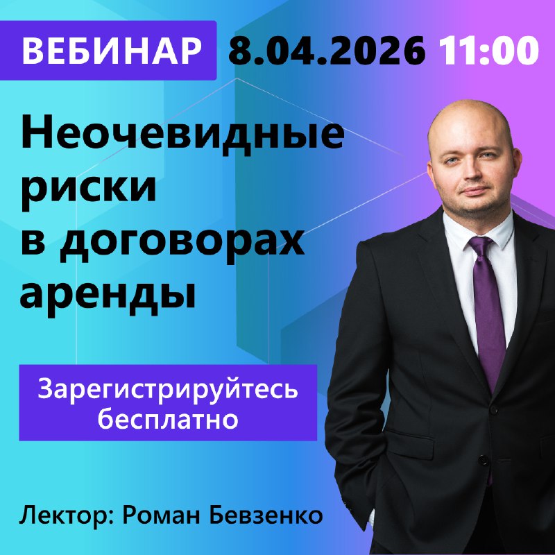 Вебинар КонсультантПлюс «Неочевидные риски в договорах аренды» с Романом Бевзенко. Участие бесплатно 8 апреля в 11:00 в прямом эфире вы узнаете о неочевидных рисках договора аренды: 🔽 обязанности ар