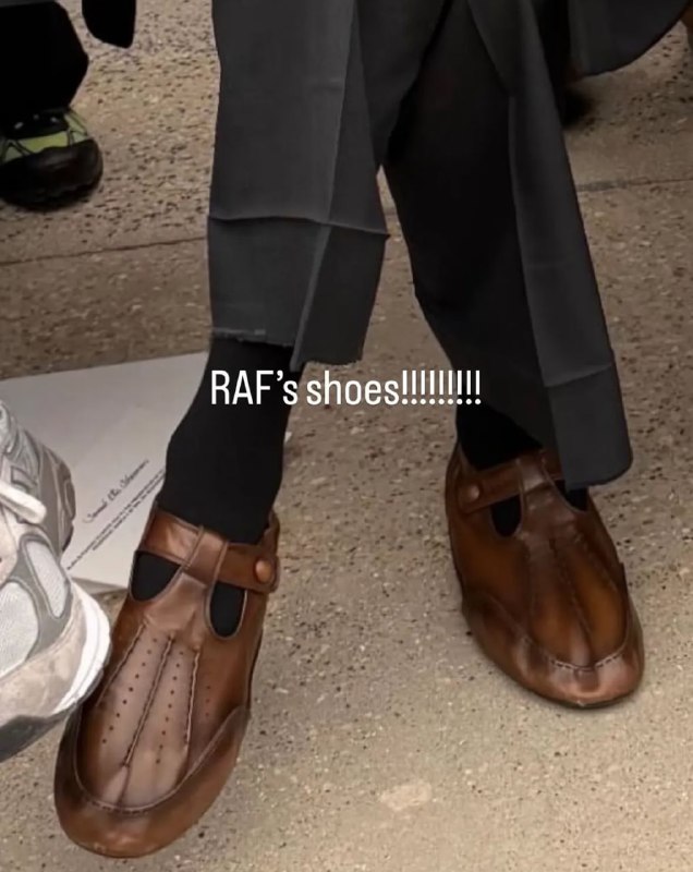 Самые внимательные обратили внимание на туфли Рафа Симонса на показе Alaïa — Раф теперь как Миучча, носит вещи собственного авторства за шесть месяцев до того, как те поступят в продажу (здесь пара с