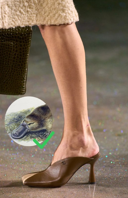 В новой коллекции Chanel парад утконосов / они же platypus-pumps / они же туфли с широким приплюснутым мысом, напоминающим клюв утконоса. Лук с этими новыми двухцветными туфлями открывал показ в Гран-
