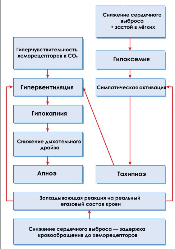 Дыхание Чейна–Стокса Описание Дыхание Чейна–Стокса — дыхательный паттерн, при котором чередуются апноэ и тахипноэ с постепенным нарастанием и последующим снижением дыхательного объёма. В клинической