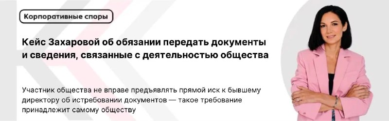 Участник общества не вправе предъявлять прямой иск к бывшему директору об истребовании документов — такое требование принадлежит самому обществу #корпоративные_споры #истребование_документов #косвенн