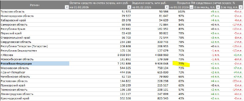 Соотношение средств на счетах эскроу к задолженности по проектному финансированию на 1 февраля выросло до 73% ЦБ опубликовал данные по остаткам средств на счетах эскроу и задолженности по проектному
