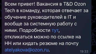 Подробности тут Откликаться можно по ссылке на HH или кидать резюме на почту atelyakova@ozon.ru