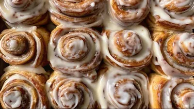 Булочки Синнабон с корицей и сливочной глазурью ✨время: 3 часа (включая расстойку) ✨КБЖУ на 1 булочку: 420/7/18/60 Ингредиенты: ✨Для теста: молоко теплое ~ 240 мл сахар ~ 100 г дрожжи сухие ~ 7 г я