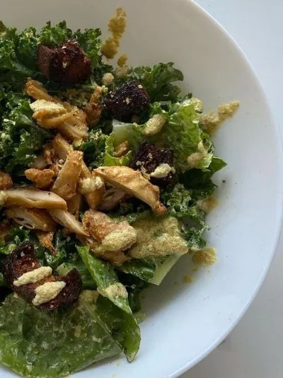 😍ПП Салат с кейлом и миндалём ❤️время: 35 мин КБЖУ на 100 г : 206 | 12 | 15 | 17 Ингредиенты: 🤍листья капусты кейла ~ 100 г 🤍нарезанный миндаль ~ 30 г 🤍куриное филе ~ 70 г 🤍хлебные крошки ~ 50