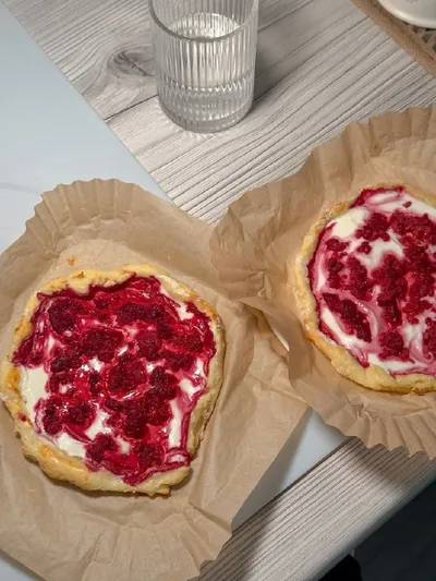 😱 Песочные пироженки с творогом и малиной 🎄время: 1 ч 30 мин КБЖУ на 100 г : 240 | 8 | 11 | 27 Ингредиенты: для теста: ❤️🩹мука пшеничная ~ 200 г ❤️🩹сливочное масло ~ 100 г ❤️🩹сахар ~ 100