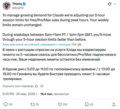 Claude урезает лимиты в часы пик из-за растущей популярности! С 13:00 до 19:00 по GMT 5-ти часовые лимиты будут расходоваться быстрее! (( Клодик, живи! @cparip G GATE Conf ⚫️ Промокод CPARIP: -20%