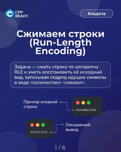 👩💻 Сжимаем и восстанавливаем строки с помощью RLE (Run-Length Encoding) Сегодня реализуем алгоритм сжатия строк с помощью RLE (Run-Length Encoding), а также восстановление строки из сжатого предст