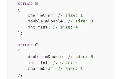 В C и C++ порядок объявления переменных может незаметно раздувать размер программы. Структура с char, затем int, затем ещё одним char занимает больше памяти, чем структура, где сначала идёт int, а по