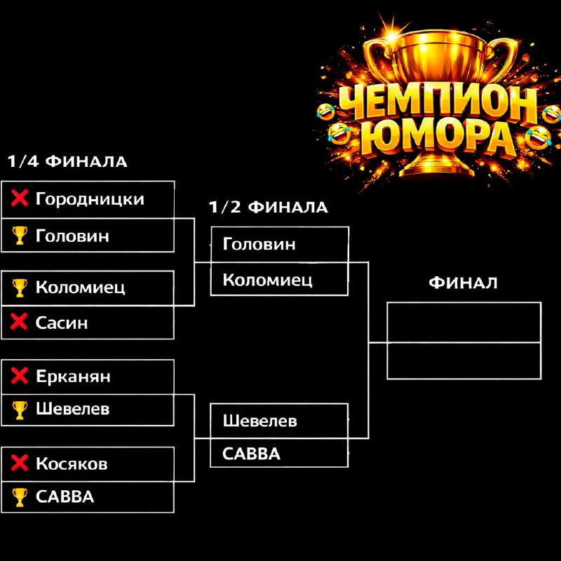 Друзья! Вчера была последняя 1/4 Чемпиона юмора 🔥 И это была точно самая смешная игра, соперники достойны друг друга, спасибо за эту эпичную зарубу 👍 Хронометраж игры: 2 часа 10 мин. Онлайн на двух