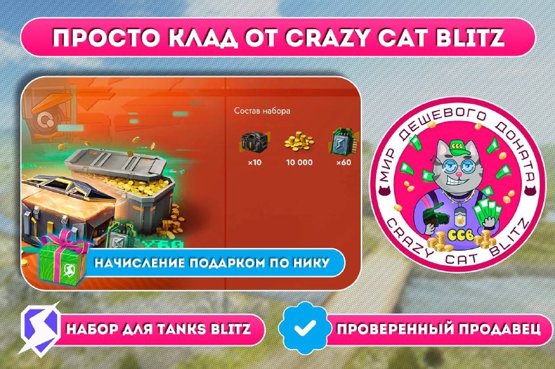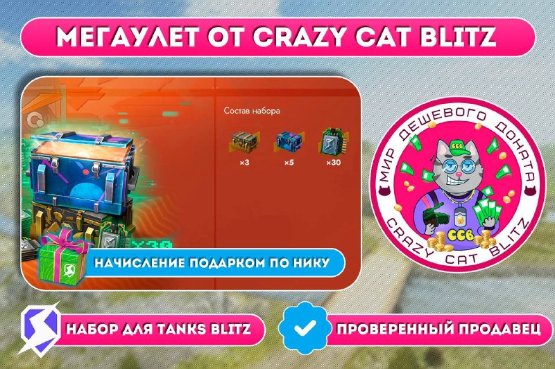 ПродажиЕСЛИ НЕ ЗАХОДИТ ПО КНОПКЕ, ВВЕДИ В ПОИСКЕ: @crazycat_blitz 👍Мы уже более 5-ти лет занимаемся продажей наборов в самых разных мобильных играх по выгодным ценам! 😻Самый дешевый донат только у CrazyCat (@CrazyCatBLitz)