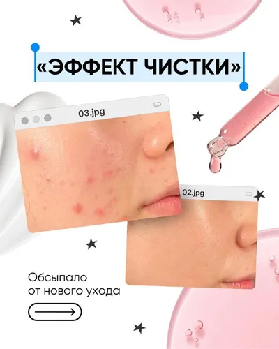 Эти высыпания — хороший знак 🖇️ Ввели долгожданный актив, а через пару дней вас «обыспало»? Без паники. С большой вероятностью — это «эффект чистки», которого опытные пользователи даже... Ждут. З