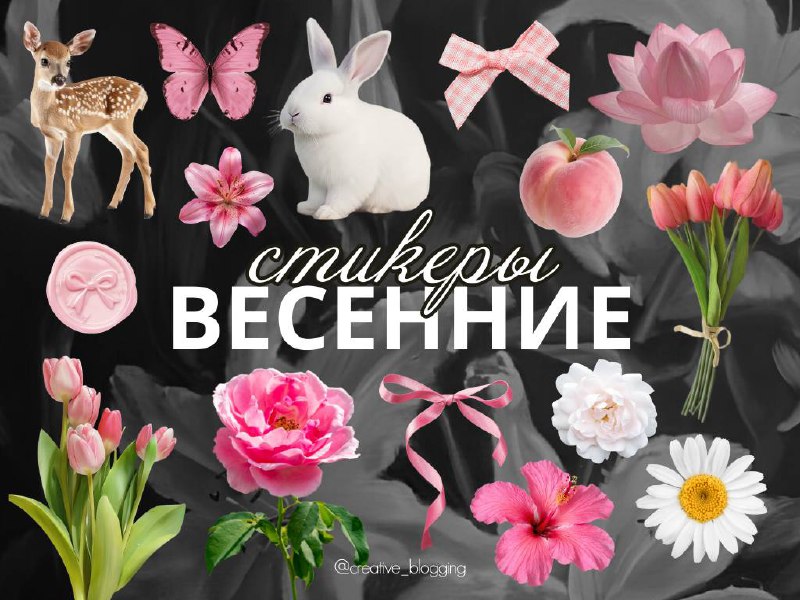 Весенние стикеры уже здесь 💗 Бантики, цветы, бабочки, нежные тюльпаны и тот самый «клубнично-молочный» вайб - все, чтобы собрать легкий и живой визуал. Они не перегружают кадр, а добавляют настроен