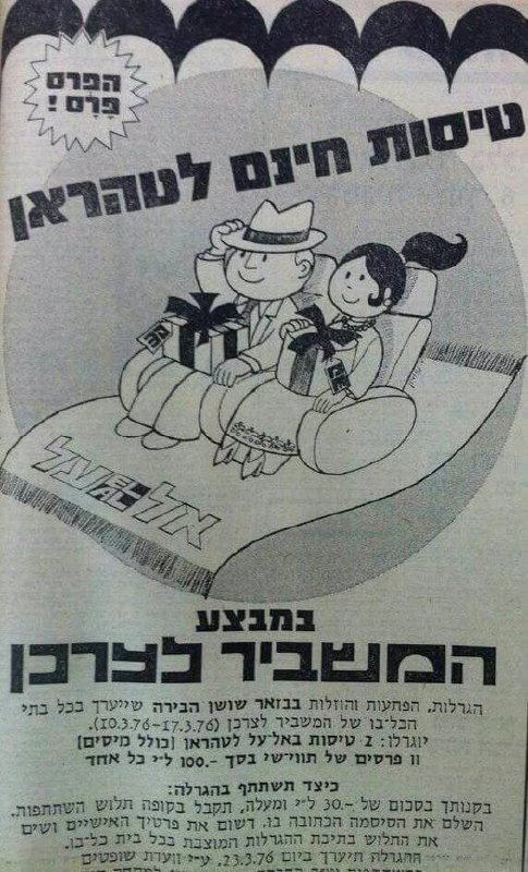 50 лет назад "Эль-Аль" и "Машбир ле-Цархан" разыгрывали бесплатные билеты в Тегеран. Подписаться на канал Война и мир на Ближнем Востоке @crescentscroissants