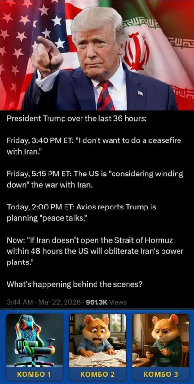 🇺🇸 Дайте Трампу таблеток: у него реально биполярка🇺🇸 — Ниже заявления Трампа за последние 36 часов: 1) Пятница (день): «Я не хочу заключать перемирие с Ираном» 2) Пятница (вечер): США «рассматр