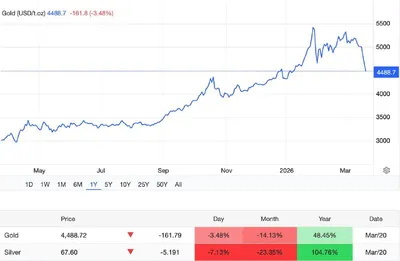 По итогам последней торговой сессии котировки золота снизились еще на 3,5%, опустившись до отметки $4488 за унцию. За неделю актив потерял 14%, что стало самым масштабным падением с 1983 года❗️ Главн