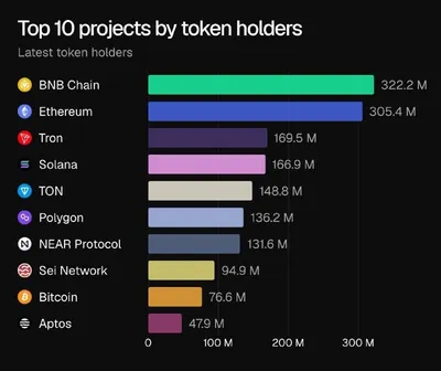 📊 Топ-10 криптопроектов по числу держателей токенов: лидируют BNB Chain с 322.2 млн адресов и Ethereum с 305.4 млн Далее идут Tron, Solana и TON.