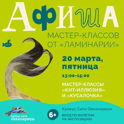 🐠Крокус Сити Океанариум и издательство «Ламинария» приглашают 20 марта с 13:00 до 15:00 на увлекательные мастер-классы! Хотите окунуться в загадочный мир океана и создать что-то своими руками? Тепер