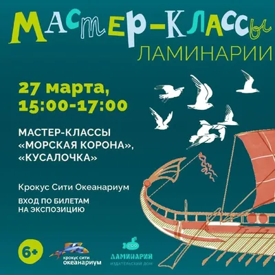 🐠 Крокус Сити Океанариум и издательство «Ламинария» приглашают 27 марта с 15:00 до 17:00 на увлекательные мастер-классы! 🔵 «Морская корона»: все, что связано с подводным миром, обладает особой крас