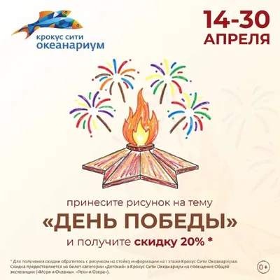 9️⃣Объявляем акцию детских рисунков ко Дню Победы! С 14 по 30 апреля приносите рисунки на тему «День Победы», получите скидку 20% на билет категории «Детский» в Крокус Сити Океанариум на Общую экспо