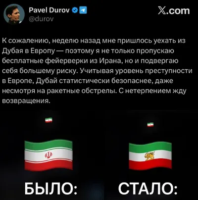 🤨 Дуров пропускает «фейерверки» Павел Валерьевич очень удачно перелетел из Дубая в Европу неделю назад, успев до начала конфликта 😮 При этом Пашок отметил, что статистически Дубай остаётся безопас