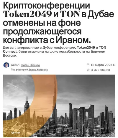 🤷♀️ Криптофест Token2049 отменили из-за ударов по Дубаю На фоне обострения конфликта в Иране и прилетов по странам Ближнего Востока одна из главных крипто-конференций в этом году отменена в ОАЭ. О