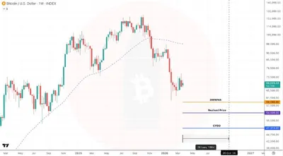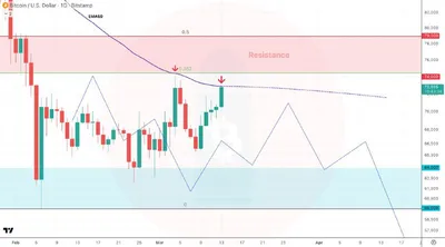 #BTC 1D (увеличено) #BTC снова тестирует EMA50 👀 Даже если мы преодолеем его, все еще существует серьезное сопротивление на уровне 74-79 тысяч долларов.
