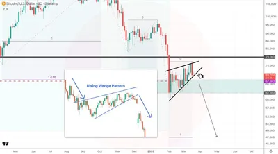 #BTC Rising Wedge находится на грани обвала 📉 Таргетинг на сумму менее 50 тысяч долларов