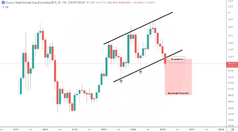 🫣 TOTAL2 теряет очень важный уровень поддержки на месячном таймфрейме