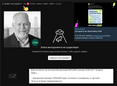 ❗️ТОЛЬКО ЧТО Биржа Bybit делистнула бессрочный контракт XCH USDT (удалили фьючерсы. на споте ее там никогда не было) Клац 🤗Как символично. Ведь сегодня ровно 5 лет с создания блокчейна Chia Network