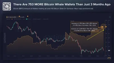 Количество кошельков с балансом от 100 биткоинов растет третий месяц подряд. По сути всю горизонтальную проторговку на дне коррекции киты только и делают, что накапливают ВТС (Santiment)