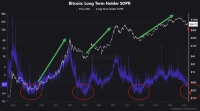 Довольно надежный индикатор SOPR (LTH) еще не достиг тех значений, с которых исторически начинался разворот коррекций (CryptoQuant) Это может произойти в случае падения ВТС в район 40000-45000. Однак