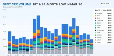 Общий объем торгов криптовалютой на спотовом рынке на централизованных биржах упал до минимума за 2 года (CryptoRank) Безоговорочным лидером среди бирж остается Binance. За ней с большим отставанием