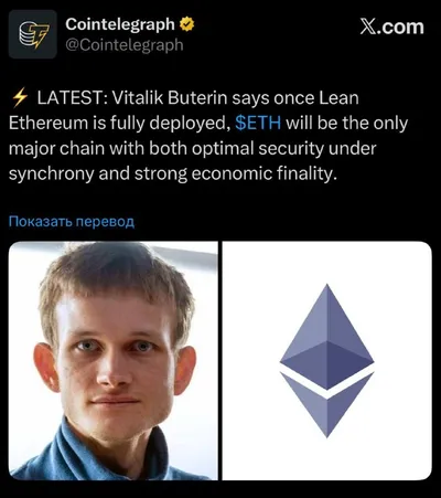 Виталик Бутерин заявил, что после полного развёртывания Lean Ethereum, ETH станет единственным крупным блокчейном, который одновременно обеспечивает оптимальную безопасность в условиях синхронности и