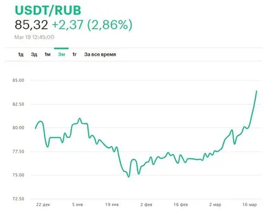 Курс стейблкоина USDT к рублю обновил годовой максимум выше 85 рублей Впервые с начала апреля 2025 года цена 1 USDT в обменниках поднялась выше 85 рублей. От годового минимума в январе 2026 года курс