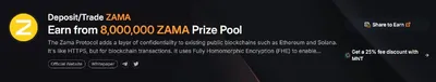 Участвуем в новом Token Splash ZAMA на Bybit 🔥 Биржа Bybit запустила новый TokenSplash с токеном $ZAMA и призовым пулом в 8,000,000 ZAMA. Награда для новых пользователей составляет 2,000 ZAMA по тек