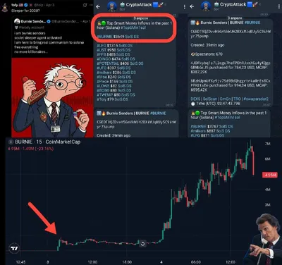 🎰🚀 #BURNIE +30000% со вчерашнего дня на фоне шила мемкоина основателем Solana, после которого активизировались SmartMoney (вчера в 06:30 по мск токен появился на первом месте в топе по покупкам у ум