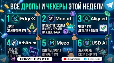 Все дропы и чекеры этой недели 1️⃣EdgeX - дроп забираем ТУТ 2️⃣Monad - накинули токены активным юзерам мейн сети и холдерам NFT. Чекаем сразу на кошельках 3️⃣Aligned - чекер ТУТ, а все детали по т