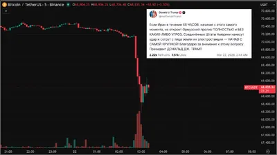 ❕Трамп угрожает Ирану ударами по электростанциям, если КСИР не разблокирует Ормузский пролив в течение 48 часов. 🔻 Крипта отреагировала мгновенно: BTC -2.7% 💬 TACO, анонсированное президентом США