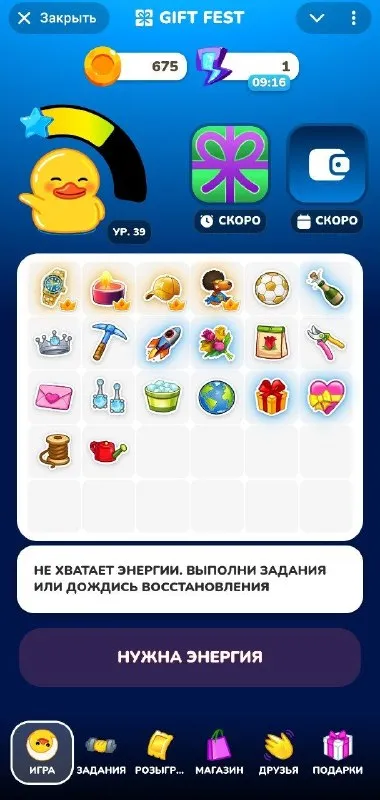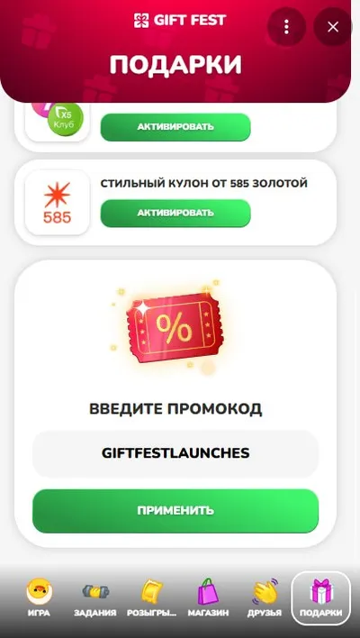 Промокод на 50 энергии — GIFTFESTLAUNCHES udp: еще один GIFTRAFFLEFEST Вводить в разделе подарки. 🔜 @giftfest2_bot