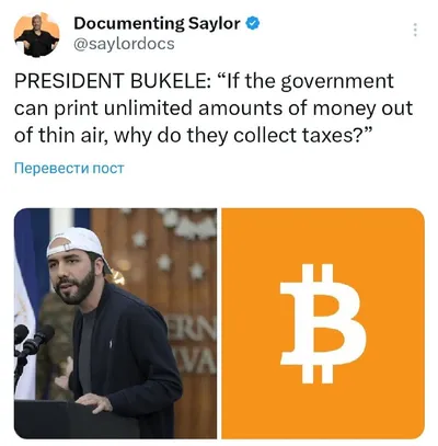 🤔 Президент Сальвадора Найиб Букеле: «Если правительство может печатать неограниченные объёмы денег из воздуха, зачем тогда оно взимает налоги?» ⭐️ - поддерживайте канал реакцией ✔️ - подпишитесь