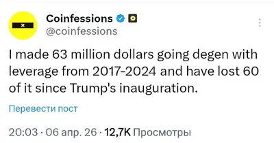 😀 «С 2017 по 2024 год я заработал 63 миллиона долларов, просто будучи дегеном с кредитным плечом, но с момента инаугурации Трампа потерял 60 из них» ⭐️ - поддерживайте канал реакцией ✔️ - подпишит