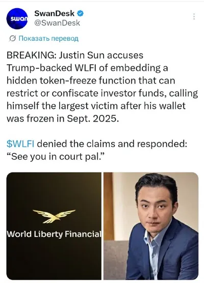 🫵 Джастин Сан обвинил поддерживаемую Трампом компанию WLFI во встраивании скрытой функции заморозки токенов, которая может ограничивать доступ к средствам инвесторов или конфисковывать их, называя се