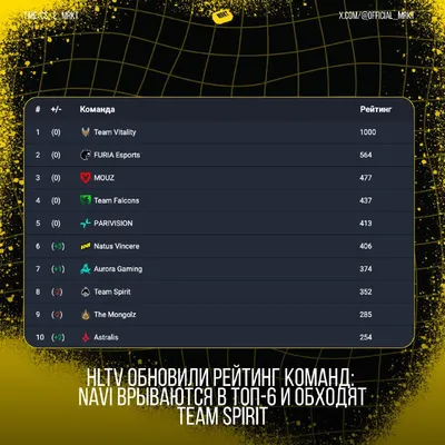 HLTV обновили рейтинг команд: 😵💫 NAVI врываются в топ-6 и обходят 🐉 Team Spirit Портал HLTV выкатил традиционное обновление мирового рейтинга команд по CS2. Выпуск от 16 марта отразил итоги заве